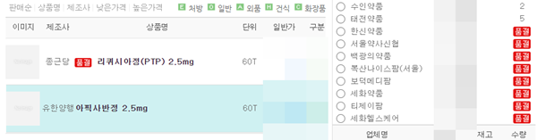 Representatively, Chong Kun Dang’s Liquisia 2.5mg is out of stock, and only 8 of Liquisia 5mg are in stock.