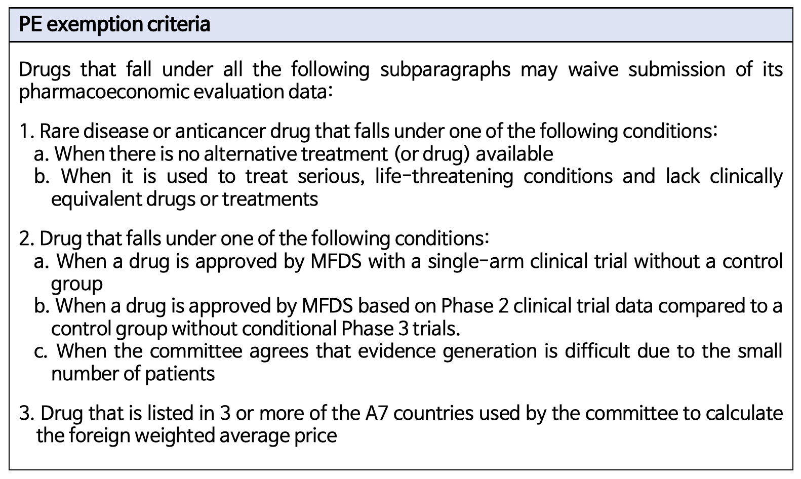 As it already meets subparagraph 2 of the PE exemption criteria, it is likely that the drug will have not much difficulty in receiving the exemption once the committee deems the remaining conditions to be met.