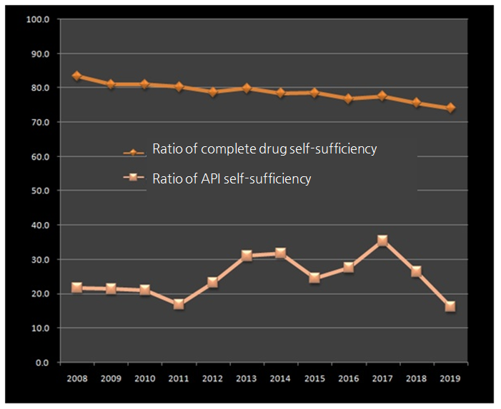 The ratio of complete drug manufacturing self-sufficiency in 2018 was 74.1 percent, which was 1.5 percent lower than the previous year.