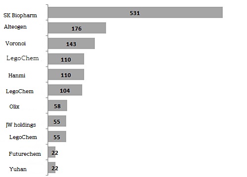 SK Biopharm received the most down payment for the second consecutive year as it transferred the copyright to the Japanese region for a new epilepsy drug developed with its own technology.