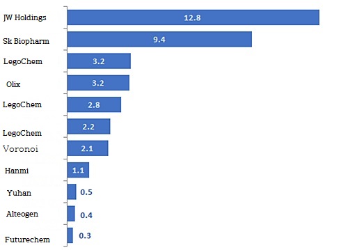 In addition to LegoChem Biosciences, relatively small-scale bio-ventures showed outstanding technology export performance.
