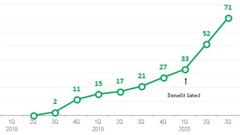 Sales have increased since it was applied to health insurance benefits in January of this year.