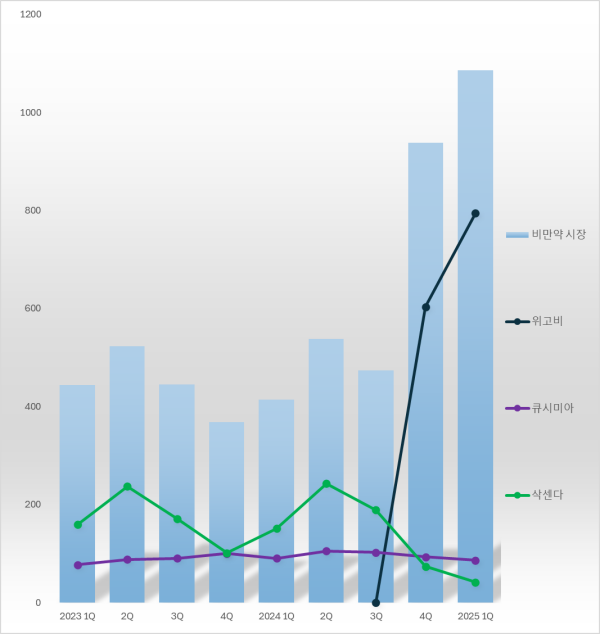 This is the first time the quarterly obesity drug market size has exceeded KRW 100 billion.