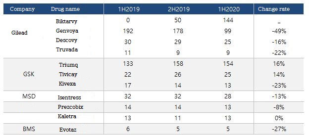 Among them, Gilead and GSK are known to occupy about 90% of the market.