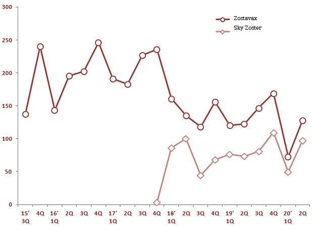 In the first quarter of last year, sales of two types of vaccine against shingles in Korea were ₩12.2 billion, a half year-on-year.