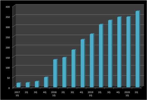 The sales in third quarter 2017 marked 2.7 billion won, but it grew by eight times in two years time.