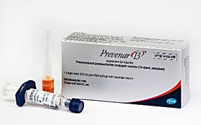 Prevenar 13 is a pneumococcal conjugate vaccine (PCV13) that prevents infection from 13 types of pneumococcal pneumonia (1, 3, 4, 5, 6A, 6B, 7F, 9V, 14, 18C, 19A, 19F, 23F).