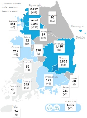 On this day, 283 out of 297 new confirmed cases are infected locally, and the number of confirmed cases is increasing rapidly in Seoul and other metropolitan areas.