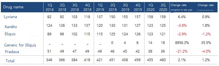 In the oral anticoagulant (NOAC) market, which forms a market of ₩200 billion annually, the prescription performance of items other than Lixiana has decreased.