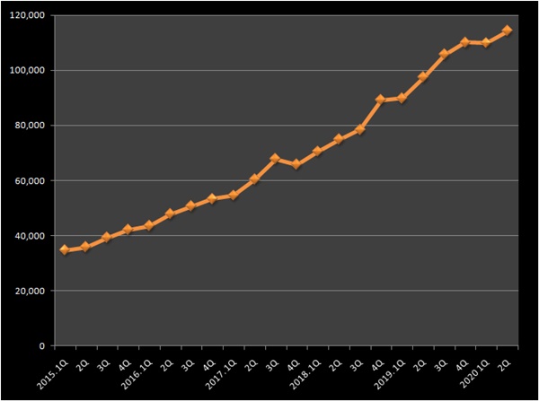 This is more than tripled in 4 years compared to ₩35.8 billion in the second quarter of 2015.
