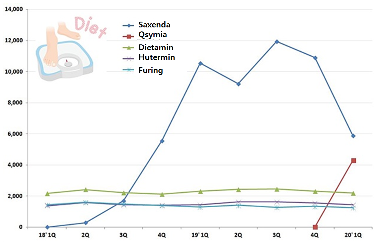 Saxenda’s promising market leadership was crippled when Qsymia stepped into the Korean market in last January.