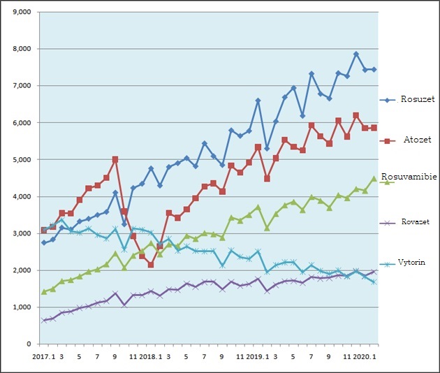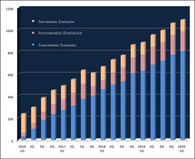 The rise in the combination of Atorvastatin·Ezetimibe is also noteworthy.