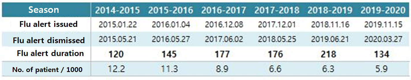 (Right) Number of influenza patients in last six seasons* (Unit: 10,000 people) Source: Health Insurance Review and Assessment Service.