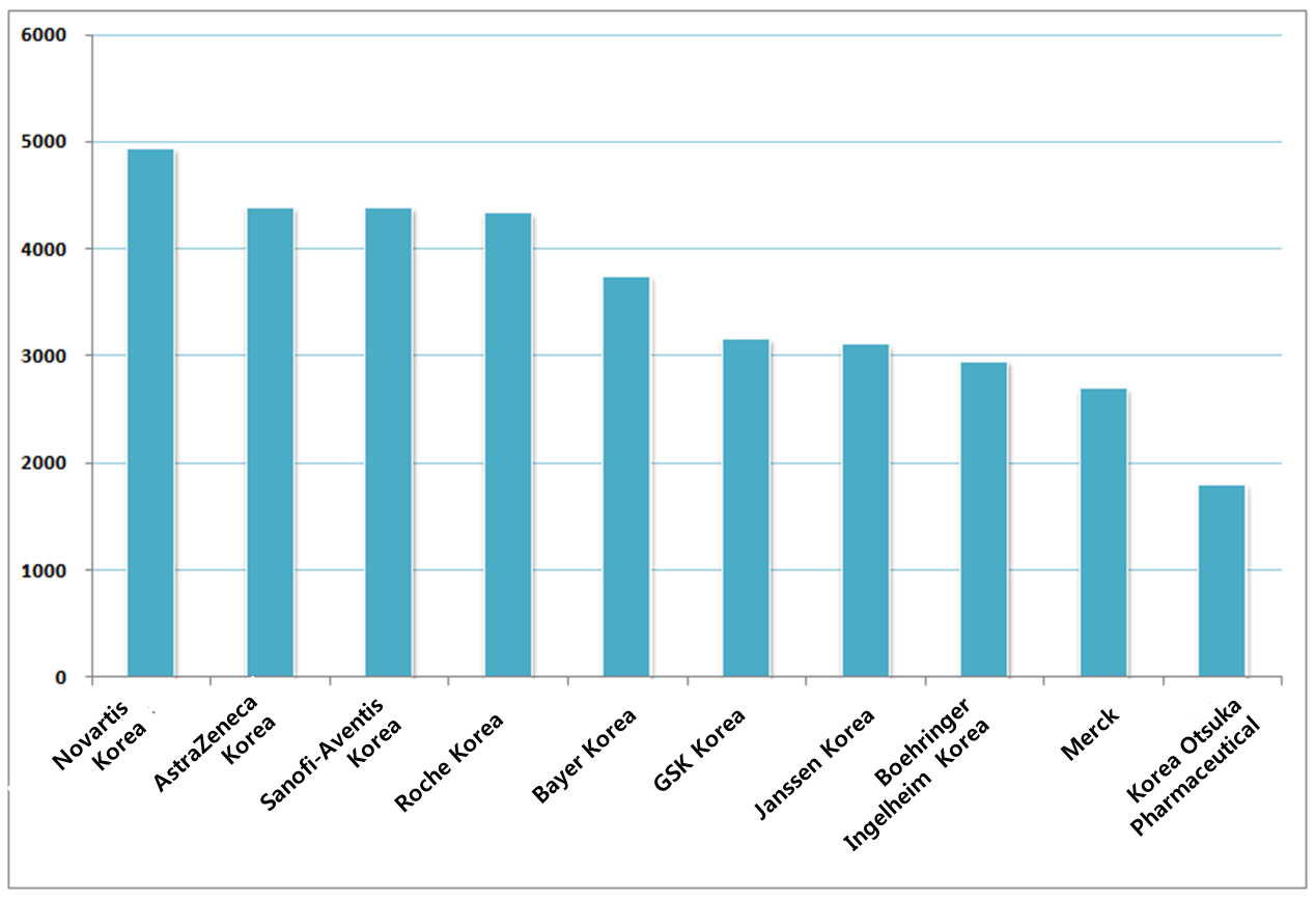 Analyzing last year’s performance of 28 multinational pharmaceutical companies in Korea on Apr.