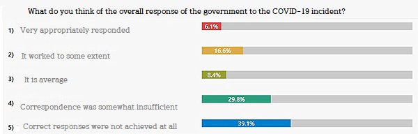 On the other hand, 14.0% (221 people) had an opinion that 'the response was somewhat insufficient', and 7.6% (120 people) had an opinion that 'were wrong', and 21.6% answered negatively.