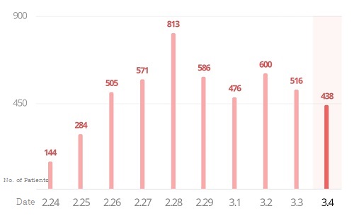 According to the government, the number of confirmed patients has declined to 400 at midnight on the 5th after peaking at 813 on last Feb 28.