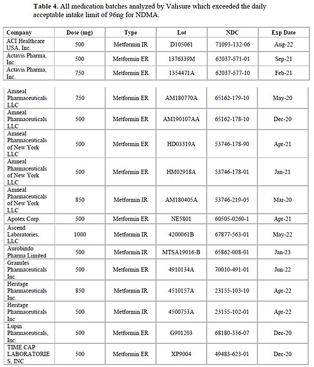 3, Valisure, a private research institute based in the U.S., has detectd cancerous N-nitrosodimenthylamine (NDMA) exceeding acceptable level of daily intake in some metformin products, which used in the U.S.