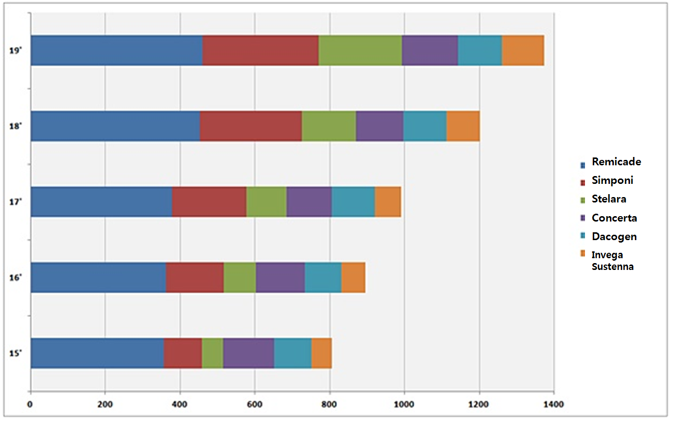 Although the yearly increase was not so significant, Remicade is the company’s biggest cash cow as it leads the TNF-alpha inhibitor market in Korea.
