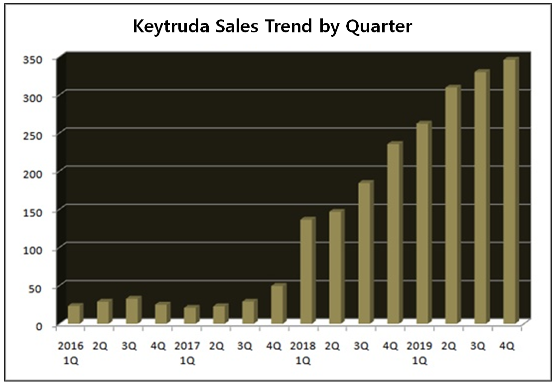 Four years since the launch, Keytruda has generated over 100 billion won a year.