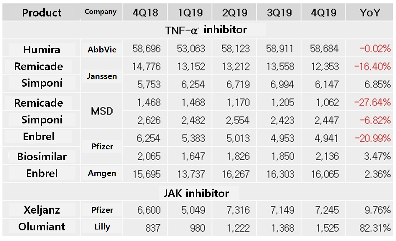 While anti-TNF drug and anti-interleukin drug have consolidated their positions in the market, JAK inhibitors’ indications have been too narrow except for rheumatoid arthritis.