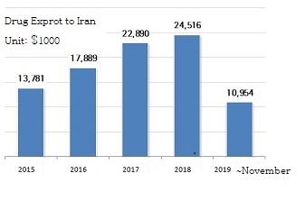 According to the Korea Customs Service's import and export statistics on the 7th, pharmaceutical products exported from Korea to Iran for the past five years (January 2015-November 2019) totaled $90 million.