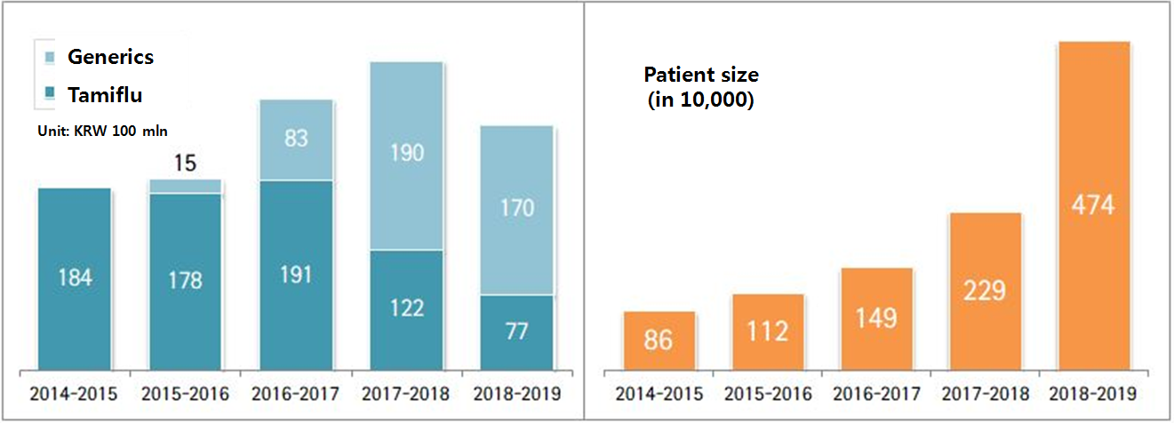 As a result, the original and oseltamivir generics together generated prescription volume of 24.7 billion won in last flu season from November 2018 to May 2019.