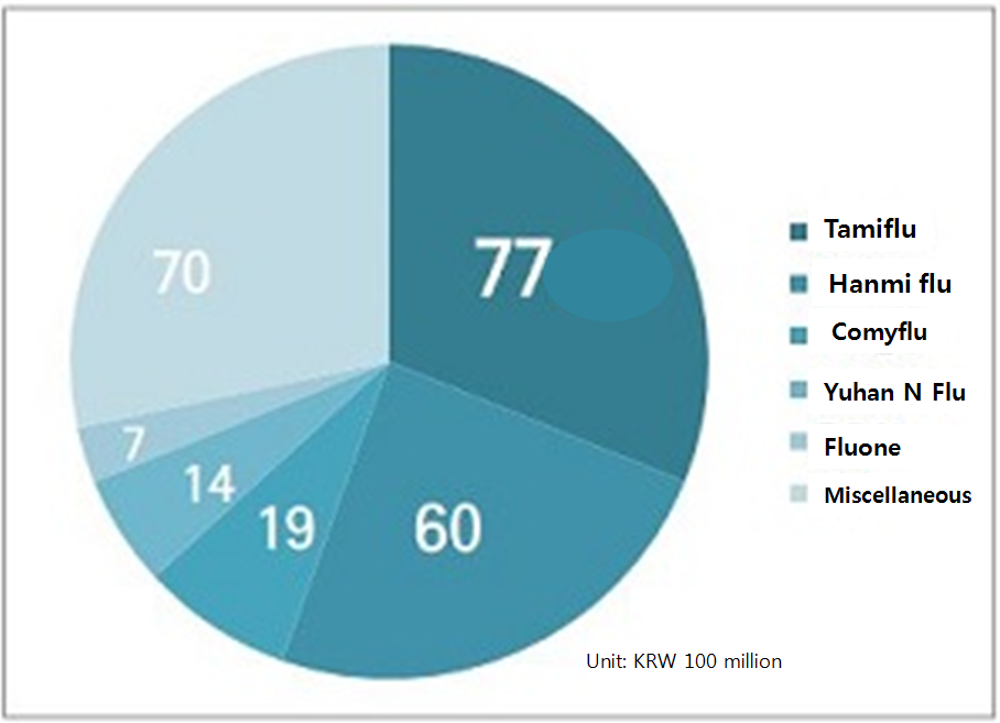 The decrease in Hanmi Flu’s market share was actually shared among other generic items including Fluone (Jeil Pharm), Seltaflu (Inist Bio), Tami-infle (Hutecs), Boryung Tami (Boryung Pharmaceutical), Tamipro (Arlico Pharm), Bisel Flu (Wooridul Pharmaceutical), Dongwha Flu N (Dongwha Pharm) and Tamiforce (Ilsung Pharmaceuticals).