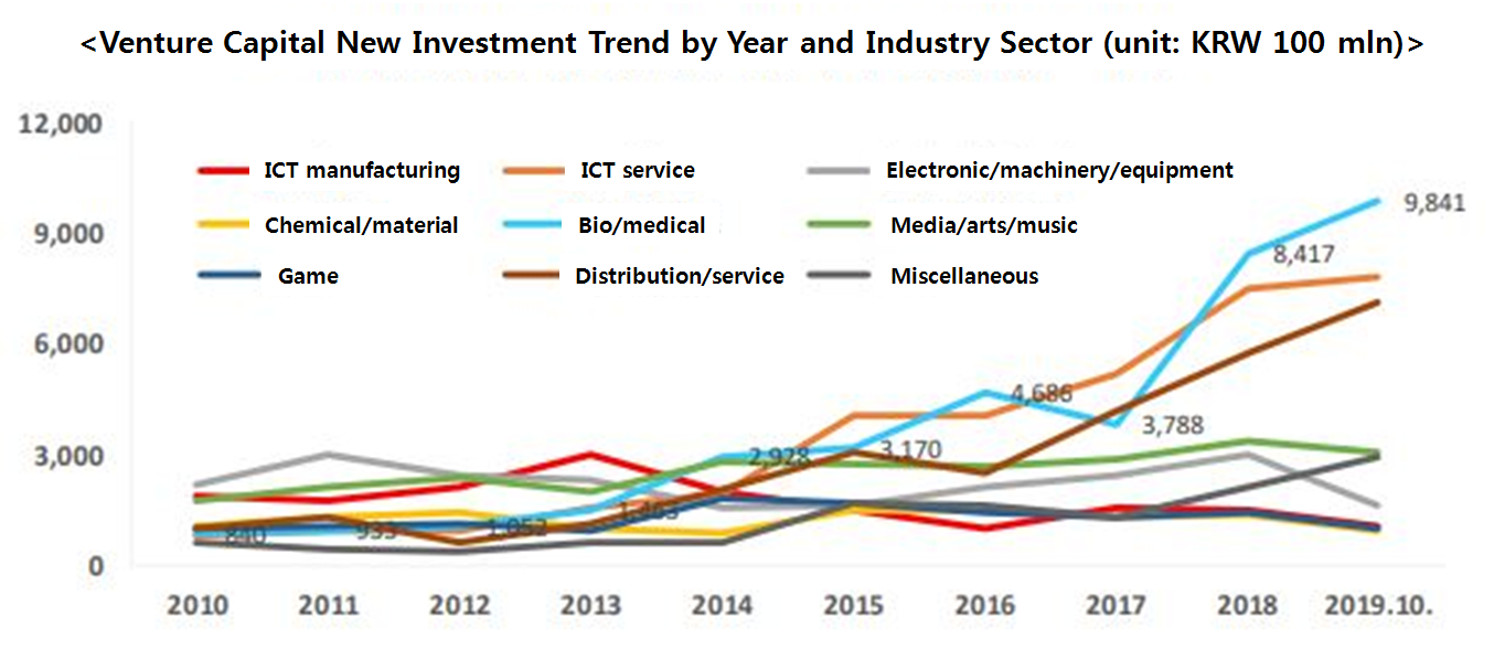 The sector received investment of 984.1 billion won as of October, taking up about 27.9 percent of the total accumulated investment volume.