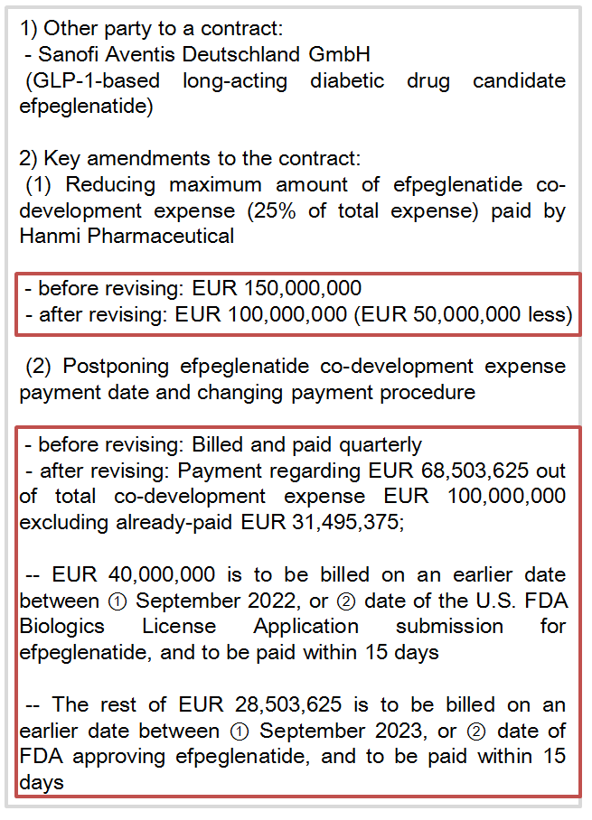 When amending the agreement for the second time, Hanmi Pharmaceutical also postponed its payment period of clinical trial expense.