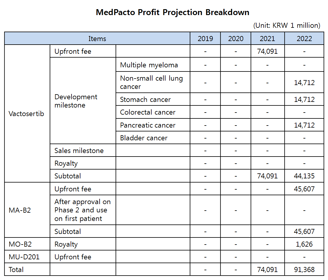 6, MedPacto CEO Kim Seong-jin stated “Results of two clinical trials, Phase 1b and 2a, collaborating with MSD and AstraZeneca, would be out next year.
