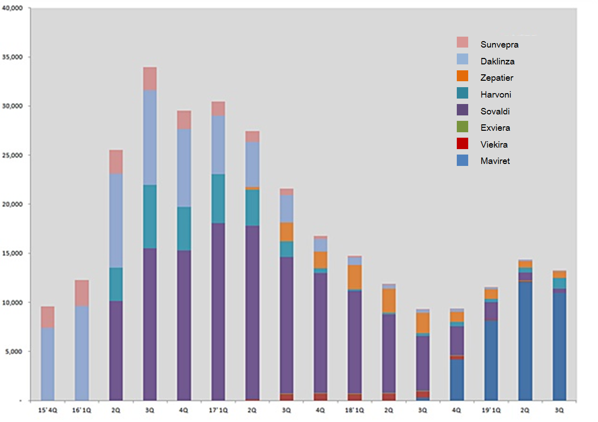 Industry insiders view Maviret rapidly took over the market as it shortened drug treatment period by a month, compared to other DAA regimen.