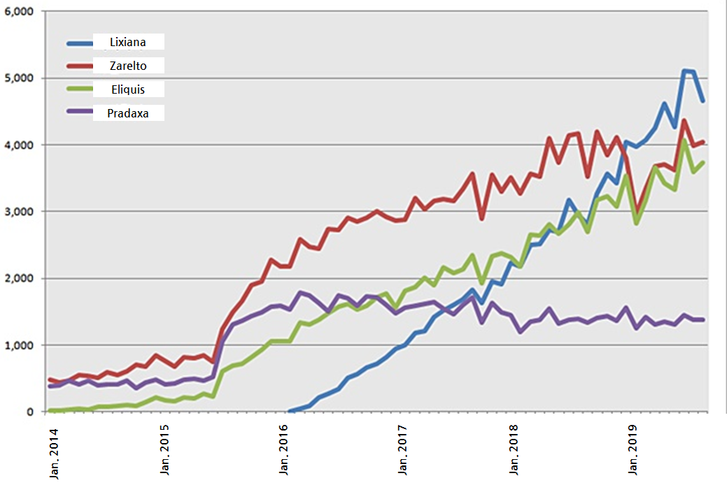 The treatment took the lead from Xarelto in last January for the first time, and it has been the most prescribed drug in the market for nine consecutive months.