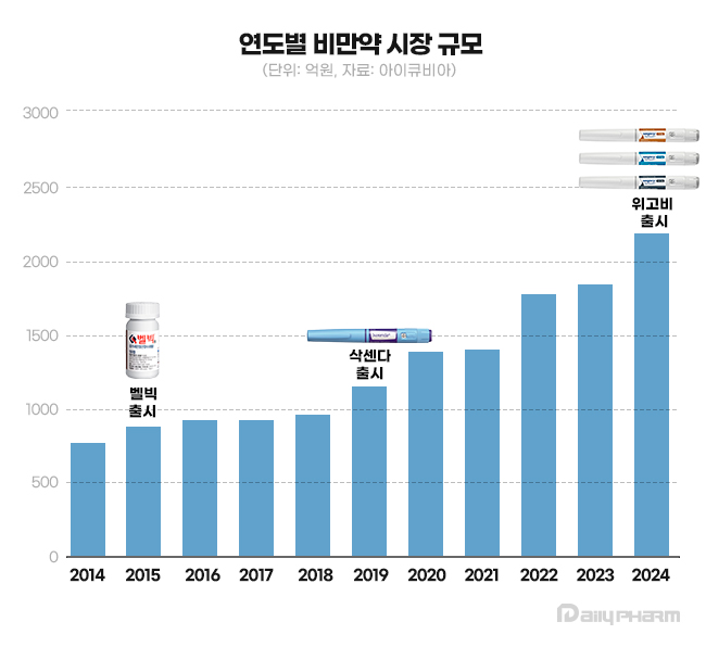 Yearly obesity drug market size (unit: KRW 100 million, source: IQVIA).
