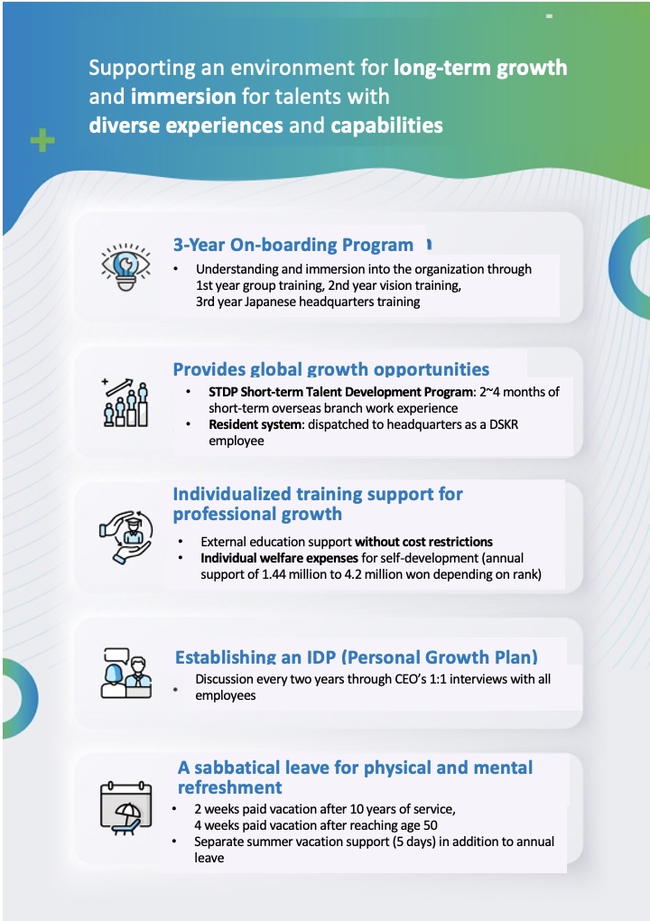 There is also a program called STDP (Short-Term Development Program) to help employees gain a global perspective.