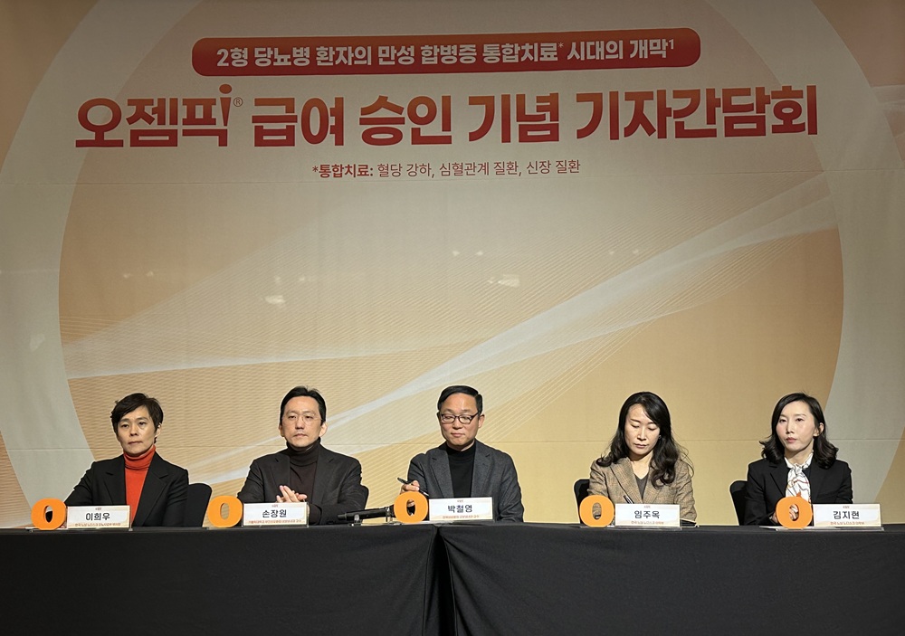 Novo Nordisk’s GLP-1 receptor agonist Ozempic has entered Korea’s reimbursement system.Experts consider this development highly significant, as this newly reimbursed therapy has demonstrated not only glucose-lowering efficacy but also evidence supporting reductions in cardiovascular and renal risks. However, discussion continues regarding the gap between reimbursement criteria and real-world clinical practice, as the coverage requirements are structured around failure with existing therapies such as sulfonylureas (SU), potentially limiting patient access.On the 13th, Novo Nordisk held a briefing at the Four Seasons Hotel in Jongno-gu, Seoul, to commemorate the domestic reimbursement approval of Ozempic (semaglutide), a type 2 diabetes treatment.(From the left) Hee Woo Lee, Director of Diabetes BU at Novo Nordisk Korea; Jang Won Son, Professor of Endocrinology at Bucheon St. Mary's Hospital; Cheol-Young Park, Professor of Endocrinology at Kangbuk Samsung Hospital; Ju Ok Lim and Ji Hyun Kim from Medical Affairs, Novo Nordisk KoreaOzempic is indicated for patients who have received metformin + an SU agent for at least 2–4 months but maintain HbA1c ≥7% who are a BMI ≥25 kg/m² or who are unable to undergo basal insulin therapy. For these patients, only triple combination therapy (metformin + SU + Ozempic) is reimbursed initially. Switching to dual combination therapy (metformin + Ozempic) is only permitted if significant glycemic improvement is achieved thereafter.Additionally, if HbA1c remains ≥7% despite 2-4 months of basal insulin monotherapy or metformin combination therapy, or if HbA1c remains ≥7% despite Ozempic combined with metformin (±SU), reimbursement is granted for use of Ozempic + basal insulin (±metformin) combination therapy.In clinical trials, Ozempic demonstrated improvements not only in glycemic control but also across cardiovascular and renal endpoints.Specifically, in the Phase III SUSTAIN 1-5, 7, and 9 trials, Ozempic showed a higher rate of achieving HbA1c below 6.5% compared to placebo.Furthermore, in the Phase III SUSTAIN 6 trial, Ozempic reduced the risk of major adverse cardiovascular events (MACE) by 26% compared to the placebo group. In the Phase III FLOW trial, it reduced the risk of the composite renal outcome measure by 24% compared to placebo.Ozempic is the only GLP-1 receptor agonist to demonstrate therapeutic benefits in reducing cardiovascular and renal disease risks.Dr. Jang Won Son, Professor of Endocrinology at Bucheon St. Mary's Hospital, emphasized, “With the clinical value of GLP-1 receptor agonist-based therapy reaffirmed, Ozempic’s reimbursement coverage represents a significant step forward in improving treatment accessibility.”Reimbursement criteria remain restricted... Need for consideration to improve patient accessDespite guideline recommendations supporting the use of GLP-1 therapies for patients with inadequate glycemic control or coexisting cardiovascular/renal disease, treatment access had remained limited due to its non-reimbursed status.According to the Diabetes Fact Sheet 2025 released by the Korean Diabetes Association, approximately half of diabetes patients are obese, with 61.1% of them exhibiting abdominal obesity. Consequently, there is high potential for utilizing GLP-1 agents, which can demonstrate weight loss effects among diabetes treatments.Dr. Cheol-Young Park, Professor of Endocrinology at Kangbuk Samsung Hospital, said, “While disease awareness among Korean diabetes patients is relatively high at 74.7%, only 32.4% achieve HbA1c below 6.5%, indicating persistent challenges in glycemic control.”He added, “Major domestic and international guidelines recommend a comprehensive approach that considers various risk factors alongside blood glucose management to reduce the risk of diabetes complications. Semaglutide formulations, in particular, can be considered a treatment option for patients with type 2 diabetes accompanied by chronic kidney disease and atherosclerotic cardiovascular disease (ASCVD), as well as for those requiring weight management.”However, concerns have been raised about limitations in the reimbursement criteria. In current clinical practice, combination therapy using DPP-4 inhibitors and SGLT-2 inhibitors is widely used, with sulfonylurea increasingly being avoided due to the risk of hypoglycemia and patient characteristics.Yet, the need to use sulfonylureas again to meet the treatment failure requirement in Ozempic’s reimbursement criteria borders on a regulation that forces failure. The fact that even discretionary non-reimbursed prescriptions are not permitted for patients who fail to meet reimbursement criteria is also controversial. This has led to backlash, with critics questioning whether the government is preemptively assuming patients' treatment needs.Professor Park said, “Although GLP-1 agents are recommended in numerous guidelines, limitations in reimbursement access have constrained their practical application in domestic clinical settings. Many guidelines recommend integrated treatment, but this remains difficult in the Korean environment. It has been over 10 years since DPP-4 inhibitors emerged. Even when DPP-4 inhibitors first appeared, most clinicians did not consider SUs as first-line therapy. The reimbursement criteria need to change."Professor Son emphasized, “The recently announced domestic reimbursement criteria have some limitations compared to current guidelines. Therefore, continued discussions are needed to enable a more flexible application that reflects complication risks. It is crucial to confirm whether measures initially taken out of excessive concern for misuse could be reevaluated later.”