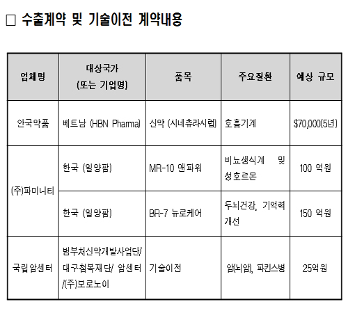 대웅제약 김도영 팀장 등 5명이 바이오 제약산업 발전에 기여한 공로로 인정받아 보건복지부장관표창을 받았다. 안국약품 등은 이번 바이오코리아 기간 동안 4건의 수출 및 기술이전 계약을 체결했다.