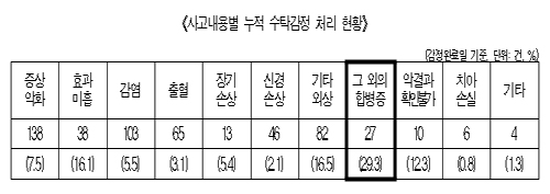 또 의료사고 감정은 '증상악화'가, 수탁감정은 '합병증'이 가장 많았다.