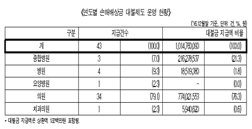 조정·중재가 성립된 후 피신청인이 손해배상 의무를 이행하지 않아 신청인이 배상금을 지급받지 못한 경우 손해배상금 대불제도를 통해 43건, 총 10억1476만원을 지급했다.