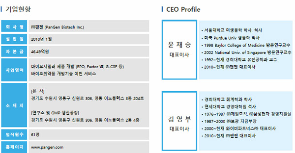지난해 3월 코스닥 시장에 상장한 팬젠(대표 윤재승, 김영부)은 틈새 바이오시밀러로 차별화된 전략을 내놓고 있는 회사다.