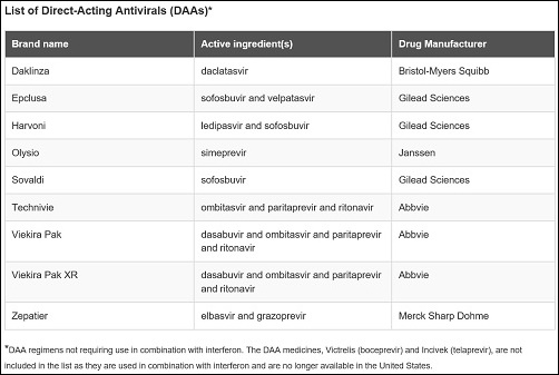 FDA에 따르면 2013년 11월부터 2016년 7월까지 약 31개월 동안 B형간염/C형간염 동시감염 환자들 중 DAA를 투여받은 이들에게서 중증 이상반응이 24건 보고됐다. 24건 중에는 사망사례도 2건 포함됐으며, 1명은 중증간손상으로 인해 간이식수술을 받은 것으로 파악된다.