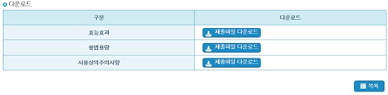 반면 제품명이나 주성분, 회사명, 허가신고일자 등 제품 기본정보나 약가 등 보험정보, 포장법은 별도 다운로드 없이 개별 약물 검색으로 즉각 확인할 수 있는 시스템이다.