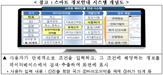 바이오약 스마트 정보 시스템도 도입해 개발사들이 국가별·의약품별·개발단계별 인허가 정보를 맞춤형으로 검색할 수 있게 개선한다.
