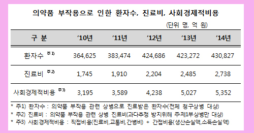 의약품 부작용으로 인한 사회적손실 연 5300억 달해