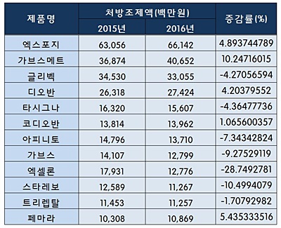 - 2016년도 처방액 3364억원...새해 매출급감 가능성 높아