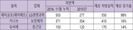 지난해 354억원대 처방실적을 올린데 이어, 올해는 11월 누적 기준 371억원대 처방실적으로 400억 돌파가 확실시 된다.