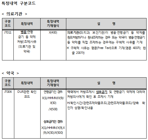 한편 '특정내역' 구분코드는 의료기관의 경우 'JT011'이고 약국은 'JT006'이다.
