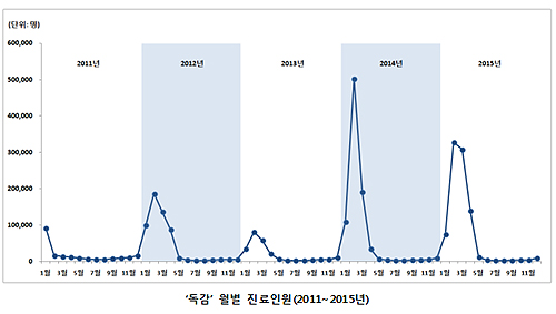 심사평가원이 2011년부터 2015년까지 최근 5년 간 심사결정자료를 이용한 독감의 건강보험·의료급여 진료정보를 분석한 결과 이 같은 경향이 나왔다.
