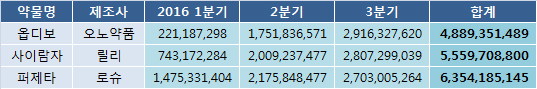 이들 약물들은 한달 가격이 약 300~600만원대로 고가이지만, 기존 약보다 진화된 효과를 증명하며 지난 3분기 약 30억원의 실적을 올렸다.