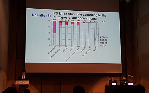 발표를 맡은 동아대병원 #손춘희 교수(호흡기내과)는 "면역조직화학염색법이 PD-1 억제제의 예측인자로서 유용하다는 게 학계의 중론이지만 여러 제한점들도 함께 논의되고 있다"며, "종양조직을 채취한 부위에 따라 양성과 음성 여부가 달라질 수 있다는 이질성이 가장 문제인 듯 하다. 폐선암의 아형에 따라 PD-L1 발현율이 어떻게 다른지 확인하고자 했다"고 배경을 밝혔다.