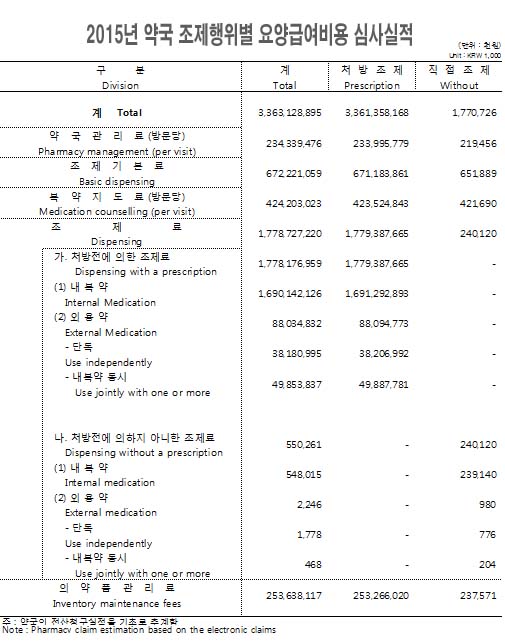[2015년도 약국 조제행위별 급여비용]